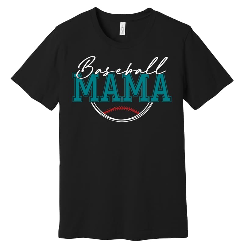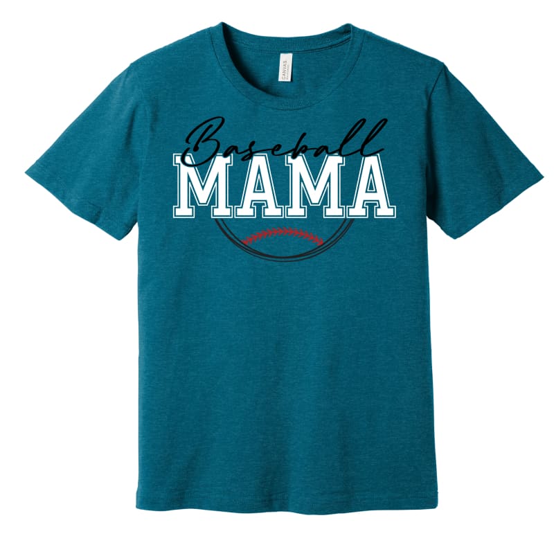 Eye-Catching Front Design: “Baseball Mama” script with baseball detailing.